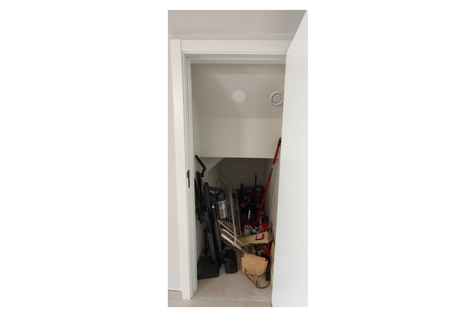El apartamento es una planta primera y última del edificio que está en un estado impecable (construido en el 2025). Está compuesto de 3 dormitorios dobles con armario empotrado, 2 baños completos con ducha italiana, 1 de los cuales es en suite y desde el cual se puede acceder a la terraza. Ofrece generosos volúmenes de vida y una gran claridad. Se compone de una cocina moderna totalmente equipada, abierta al salón desde el que accederá a la terraza con vista a las zonas comunes y ya equipada con toldos eléctricos. Desde la vivienda se sube al solárium privado de 64m2 con vistas espectaculares al mar y a la montaña y ya equipado de una cocina y barbacoa exterior. Además tiene un lavadero independiente en la vivienda ya con el extra de una ventana corredera así como una plaza de aparcamiento y un trastero privado en el sótano.